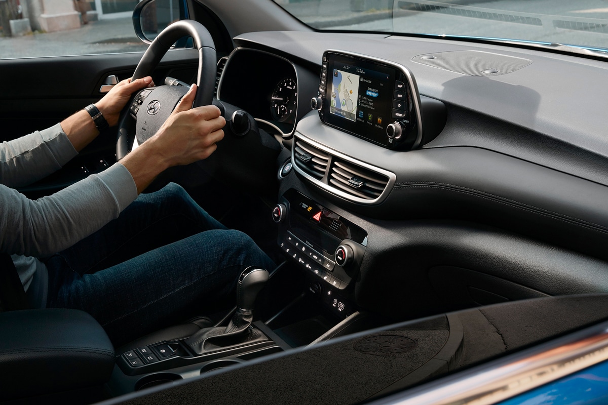The 2021 Tucson introduces a vibrant 7" color touchscreen infotainment interface, fully compatible with both Apple CarPlay and Android Auto. Blue Link Connected Car System services are also available for the new Tucson, offering easy access to important driving information and assistive service.