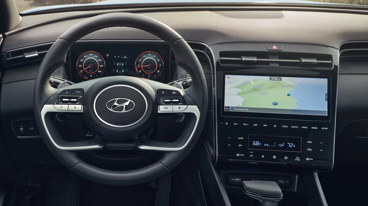 Delving into the technological realm, the 2024 Hyundai Santa Cruz showcases an interior designed for the modern driver. The 8-inch touchscreen and 4.2-inch gauge cluster, expandable to an available 10.5-inch display, serve as the command center for a host of connectivity features. Wireless Apple CarPlay and Android Auto seamlessly integrate with your smartphone. At the same time, the available Bose Premium Audio system, complete with an external amp and eight speakers, transforms every drive into an acoustic pleasure. The tech-savvy driver will appreciate the inclusion of the Bluelink Connected Car System, Bluetooth hands-free with wireless audio streaming, and the convenience of a Proximity Key entry with push-button start. The interior also offers a customizable driving experience with a 6-way adjustable seat, upgrade to an 8-way power seat, and the option for heated seats. The practicality extends to the sheet-molded composite bed, a lockable under-bed storage compartment, LED bed lights, and a versatile multi-functional tailgate.