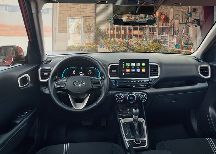 The Hyundai Venue spreads a solid set of interior comfort and convenience features across its three trims, with the entry-level SE trim coming with air conditioning, remote keyless entry, and a center storage box with a sliding armrest. The SEL trim takes things a step further, adding a sunroof, a leather-wrapped steering wheel, a leather-wrapped shift knob, and automatic climate control. The top-level Limited trim ensures features like heated front seats.